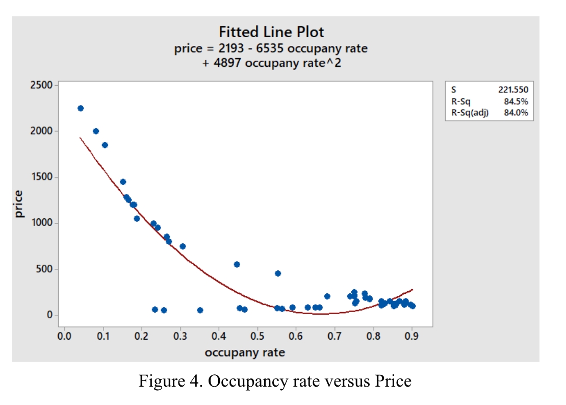 对于每个组,我们有一组数据,其中变量X是列表价格,变量Y是需求,由入住率表示。